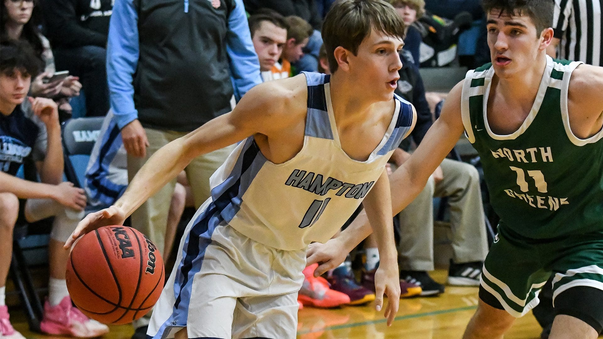 The Hampton boys used a pair of runs to outlast and take a 64-54 victory over North Greene, while the Lady Bulldogs were unable to edge ahead late in a 62-57 decision to the Lady Huskies.