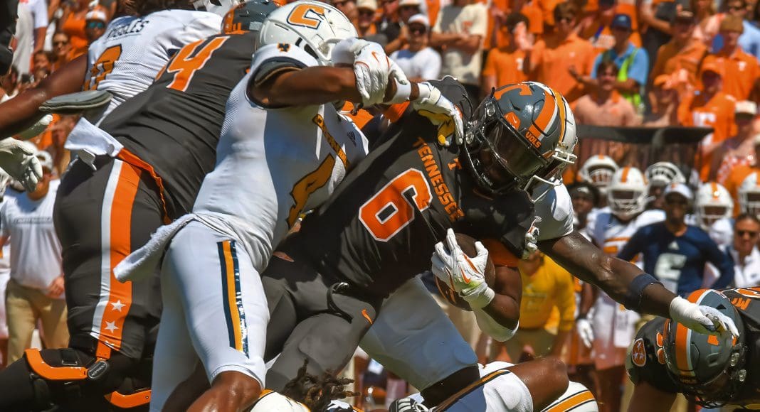 Dylan Sampson led the Tennessee rushing attack as he recorded a hat trick with three touchdowns and finished with 124 yards on 12 carries.